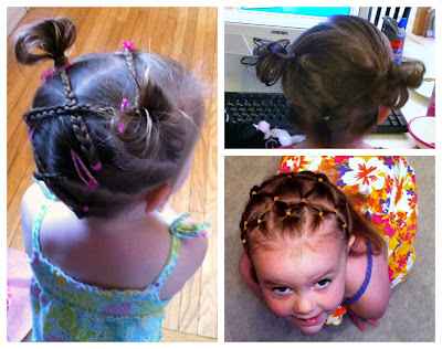 I've been having fun fixing Ava's hair for school. I bribe her to sit still with a little tv in the morning and we end up with a cute hair style that will last through nap and still look nice in the evening. It also keeps the hair back off her face.