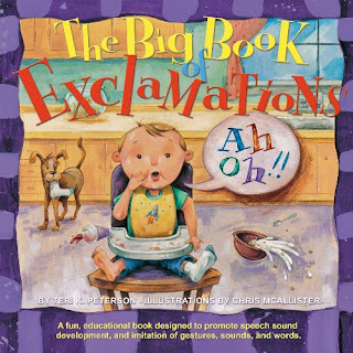 This is a review of The Big Book of Exclamations by Teri K. Peterson with illustrations by Chris McAllister. The author is a Speech Language Pathologist and designed the book as a combination of a tutorial to teach parents how to use a picture book to elicit utterances from their young children and a picture book designed to appeal to young children.
