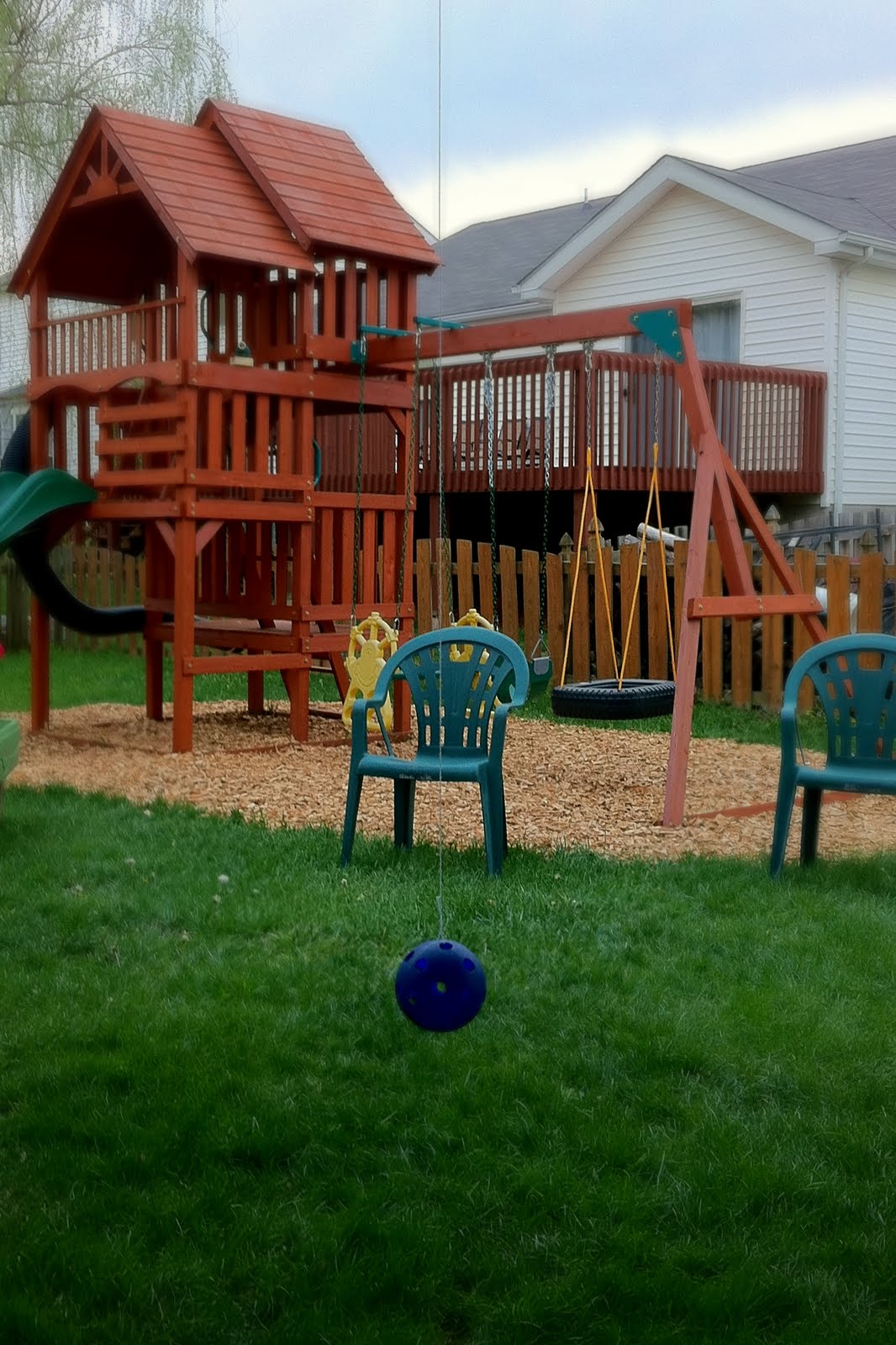 My children seem to be entirely dependent on me for their entertainment. "Mama, will you play with me? I'm lonely." Michael will say. Or Ava will demand, "Mama! Pay! (play)" We have a beautiful playset outside with three levels and a slide and some swings. We have a sand table and a box full of balls, chalk, bubbles, jump ropes, bats, and squirt bottles. However, when we're outside all they seem to want is for me to push them on the swings. They haven't learned to climb up into the swing and pump on their own yet. I need to encourage some independence in their play.