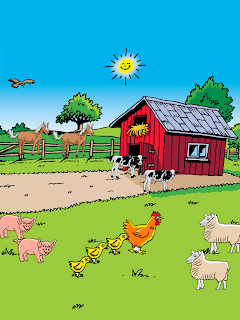 Farm: Mama chicken was at the farm today. (insert chicken, have child say, "chicken"). She had three baby chicks with her. (insert three baby chicks counting, "one, two, three") They were lonely! They wanted to play with some friends. (toss in a couple of sheep and practice saying, "baa") I could continue, but you get the idea.