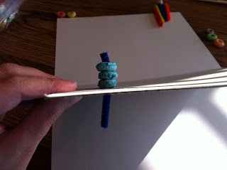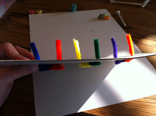 - Cut pipe cleaners to about 2-3 inches long and feed them halfway through holes in cardboard.