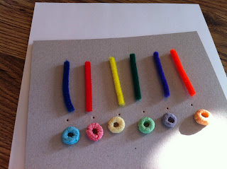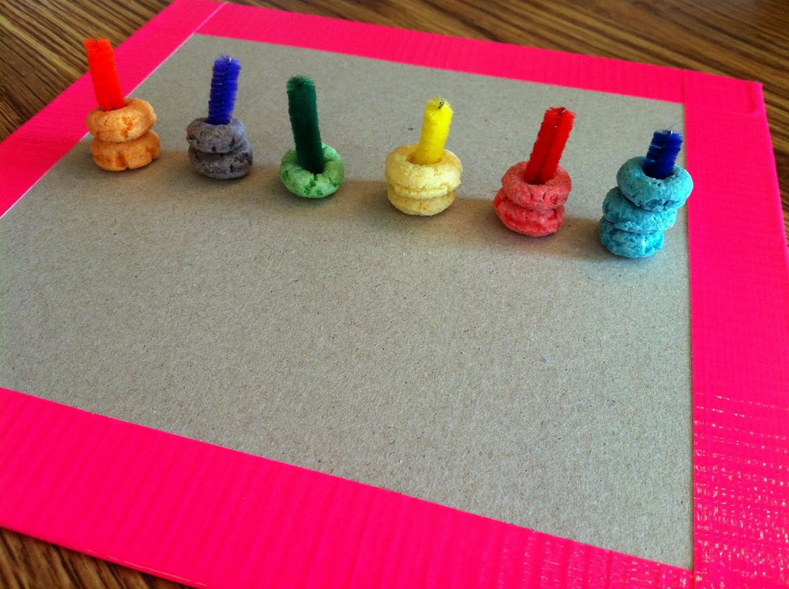 An alternative to froot loops would be threading color coordinated pony beads onto the pipe cleaners, but you just wouldn't eat them when the pipe cleaner was full. You'd need some other higher level reward (perhaps you could then thread three at a time onto yarn to make a bracelet for them to take with them at the end of the session).