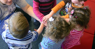 First I had to eliminate all the words with blends (CCVC). That eliminated 6 words (stop, sweep, clap, step, scope, and grape). Then I had to eliminate the 6 words that began with phonemes that were too difficult for her (cup, cap, chip, drape, cop, and rope). That left me with 8 (soap, type, ape, top, shop, ship, map, and soup).