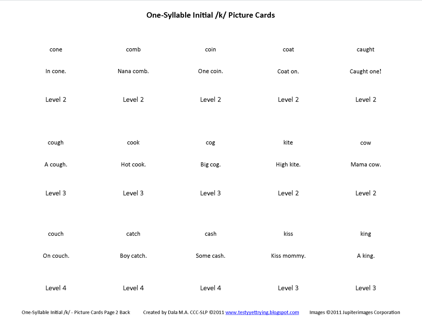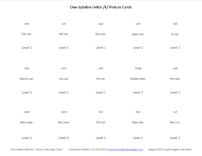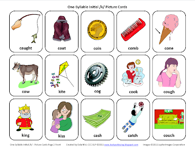 Initial K: Free Speech Therapy Articulation Picture Cards