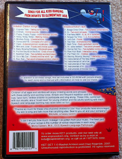 This is a review of The Kids Express Train Set 1 (referred to from here on as KET Set 1 for short) created by Rachel Arntson, M.S., CCC-SLP. Rachel was generous enough to provide me with a complimentary copy of this set to review. At it's core, this product is music. It is therapy music. The KET Set 1 comes with two music CDs, a CD-ROM of therapy resources, and a manual.