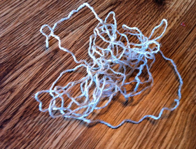 The next morning the children went to preschool and I was still excited enough about the new vacuum cleaner to decide that spending some of my precious "me" time vacuuming was recreational in nature and I moved on to the berber carpet in the living room. I was humming along happily vacuuming when I met my first snag. Someone really should have warned me about what would happen when high-end vacuum cleaner meets an exposed loop in a berber carpet. A fraction of a second was all it took and I ended up with this: