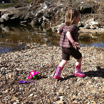 Last week the weather around here was gorgeous. Temperatures were in the high 70s and it was sunny. We have a park about a three minute drive from our house that has a creek running through it and I decided this year was the right year to scramble down the hill and let the children play in the creek.